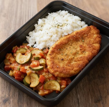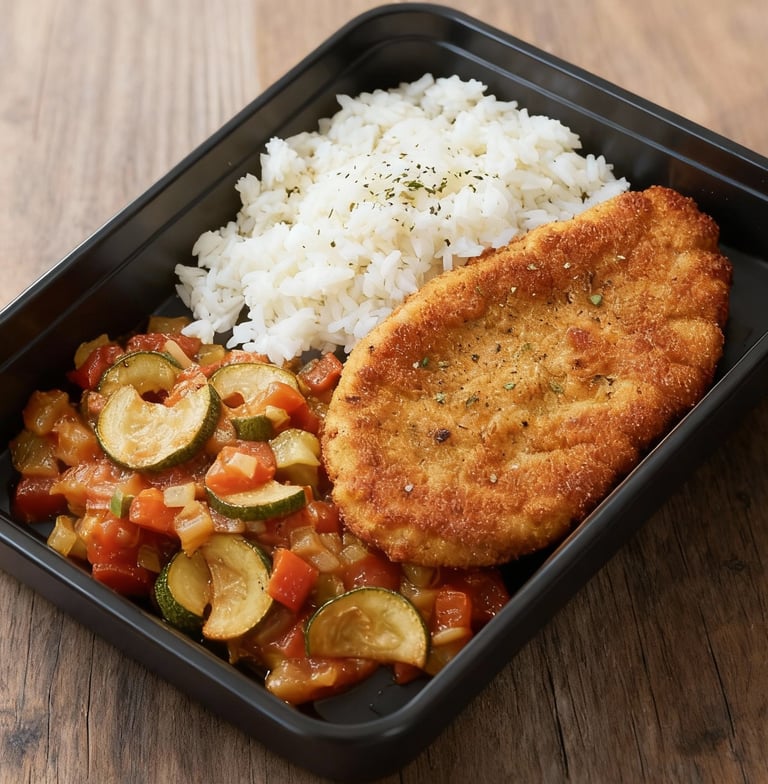 Crispy Chiken Snitzel with rice & Ratatouille