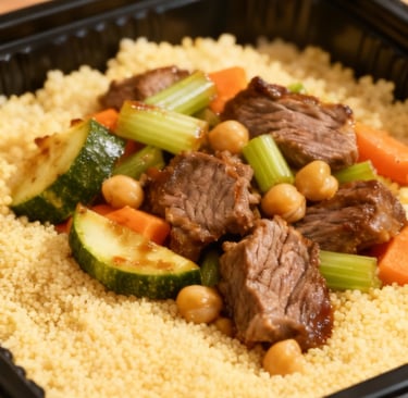 Traditional couscous with beef, vegetables & chickpeas