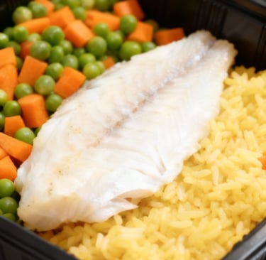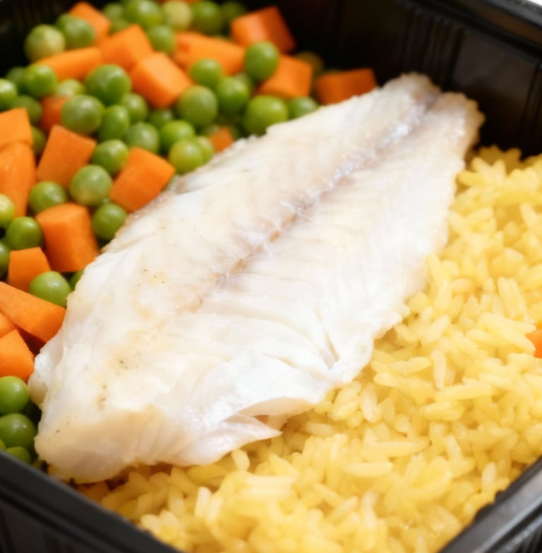 White fish and peas with curry rice